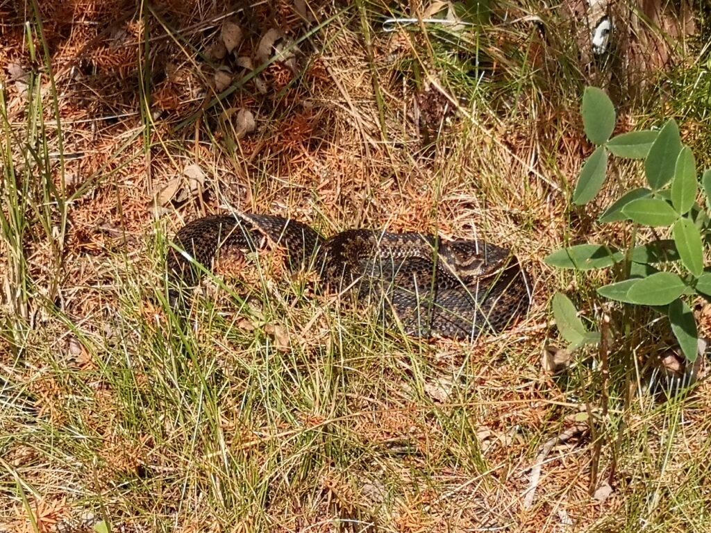 Wahrscheinlich dachte sich die Kreuzotter bei unserem Eintreffen kurz vor Einbruch der Nacht: „Verdammt, ich dachte, ich hätte meine Ruhe. Jetzt, wo ich erstarrt bin und nicht mehr weg kann, kommen die Biker hier an und trampeln auf mir rum.“