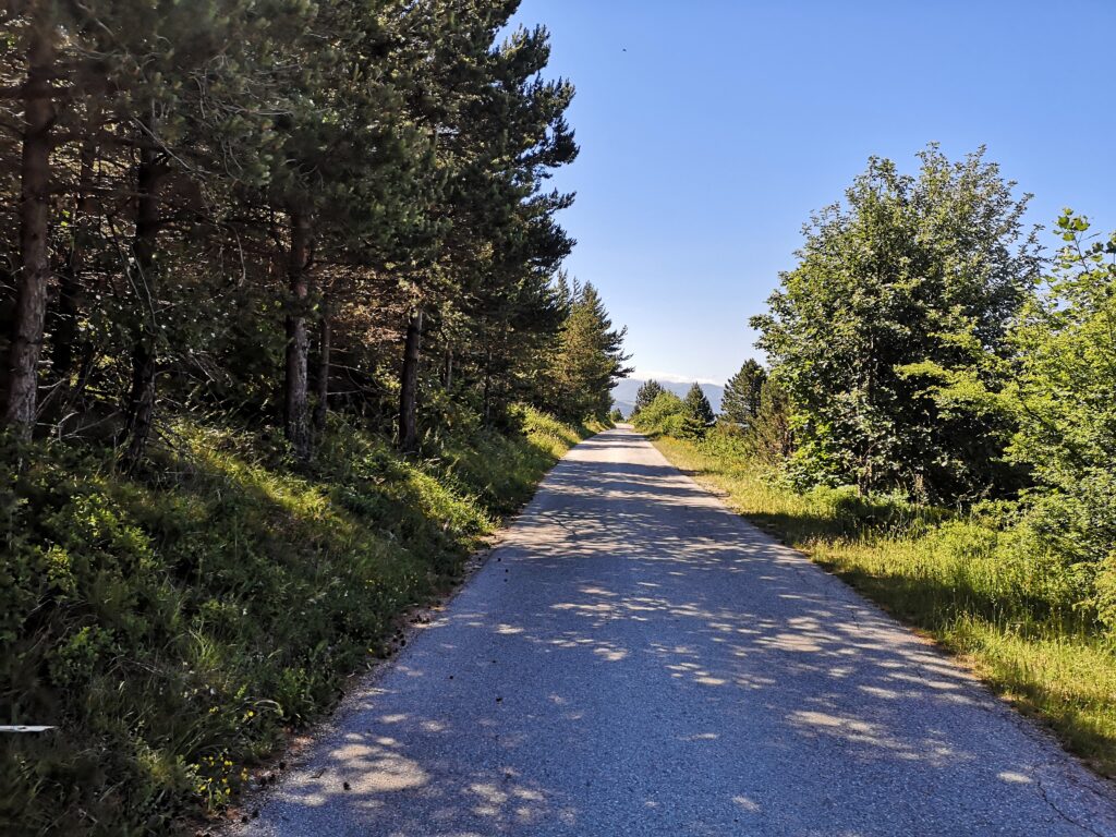 Während die Wanderer frühzeitig losgezogen sind, haben wir in Ruhe gefrühstückt und abgebaut. Am Morgen sind wir dann zunächst der Teerstraße gefolgt bis diese mittags auf einen Waldweg stiess.