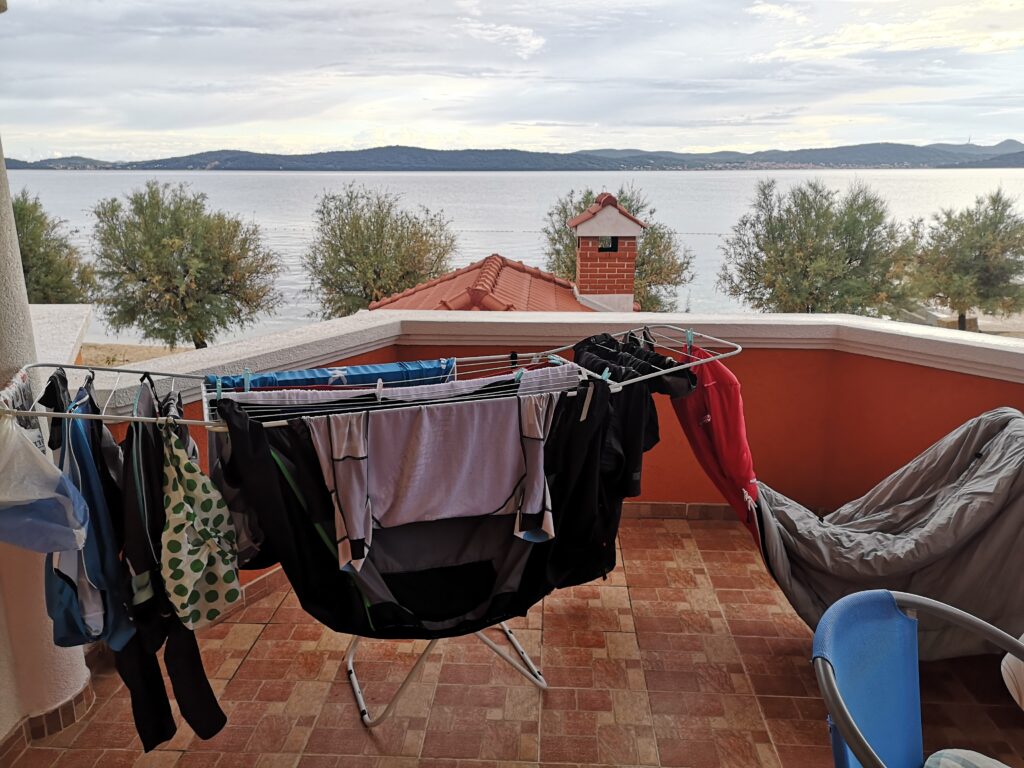 Donnerstag, 9 JuniHeute Nacht hat der Regen auch die Küste erreicht. Zwischen 8 Uhr und 11 Uhr gibt uns der Wettergott ein Zeitfenster, in dem wir halbwegs trocken abbauen und frühstücken können. Kurz nach dem Start öffnet der Himmel seine Schleusen und uns kommt auf der Straße das Wasser entgegen. Nachdem wir zwischendrin etwa eine Stunde im Trockenen fahren können, erwischt uns die zweite Dusche direkt vor dem Tagesziel Zadar.