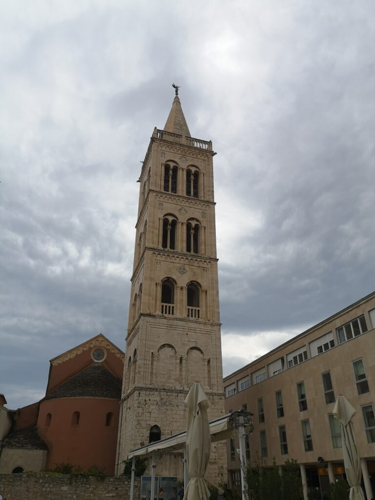 Die Kakophonie der Meeresorgel ist fotografisch nicht darstellbar, der Lichtgruß an die Sonne funktioniert erst nachts und so hat meine fotografische Motivation nur für ein Bild des Kirchturms gereicht.