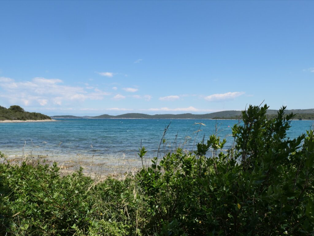 Heute hat uns der Wind wach gerüttelt. Wir haben uns deshalb entschieden, zuerst einige Kilometer zu fahren, um an einer windgeschützten Stelle unser Frühstück einzunehmen. Von dort hatten wir einen schönen Blick auf die kroatische Inselwelt.