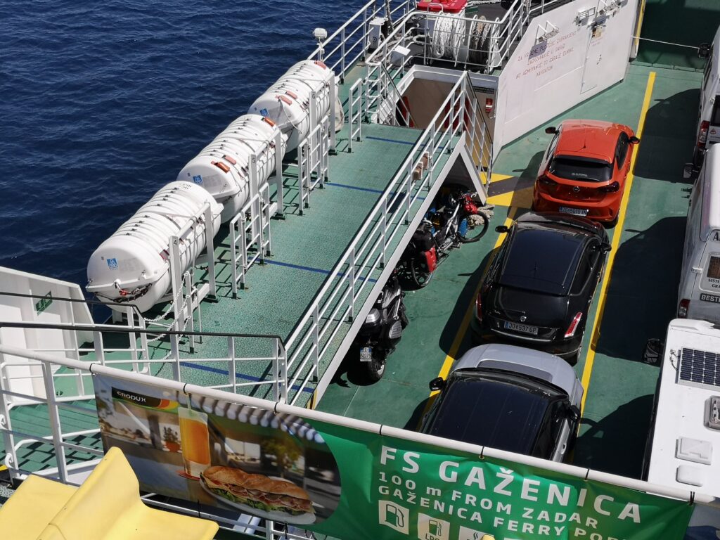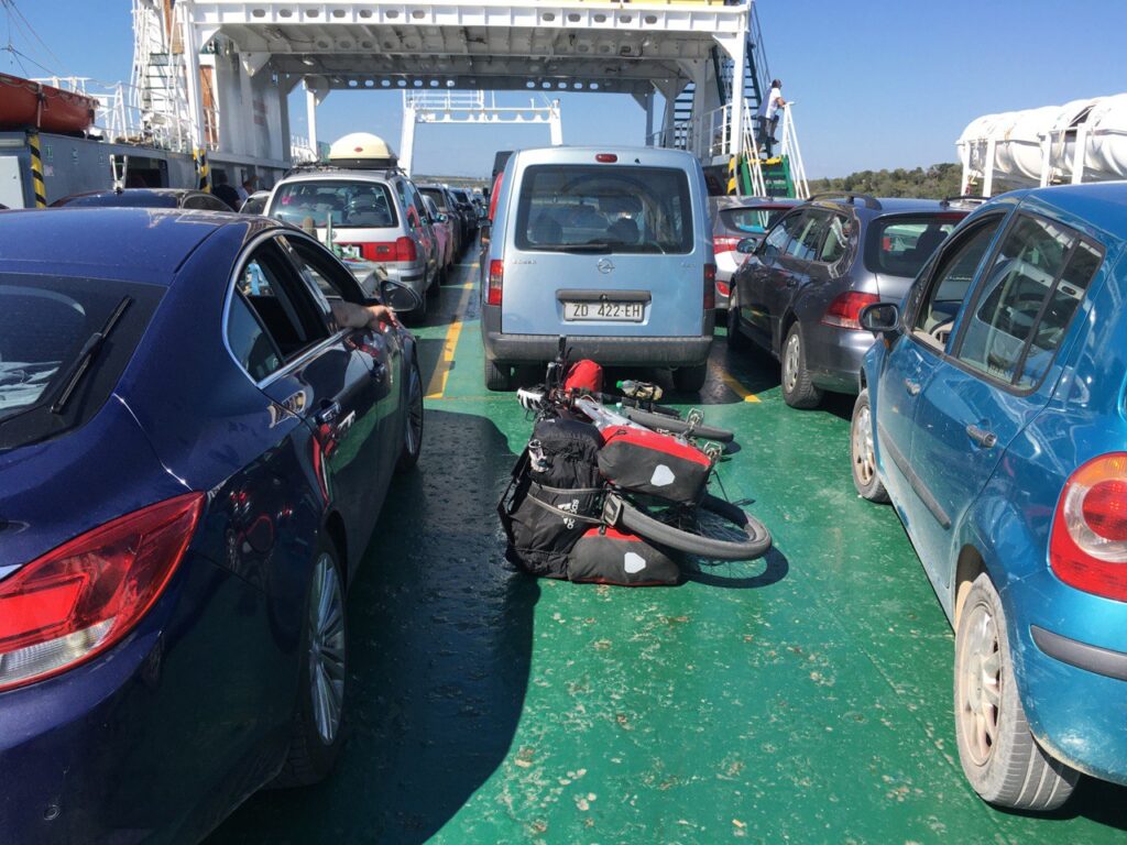 Nach einer kleinen Stärkung im Hafen von Zadar geht es mit der nächsten Fähre auf die Inseln Ugljan und Pasman, die durch eine Brücke verbunden sind. Die Fähre zurück aufs Festland nach Biograd na Moru erwischen wir just in time. Der Lademeister und ein Kleinwagenfahrer diskutieren, ob das Auto noch in die verbliebene Lücke passt. Als wir auf die Fähre fahren und unser Rad in die Lücke legen, ist die Diskussion beendet.