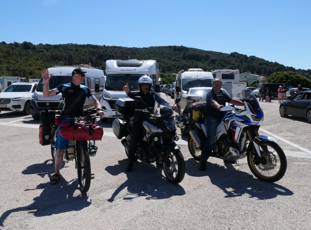 Heute ist Trans-Fähr-Tag. Zunächst radeln wir etwa eine Stunde zum Fährhafen auf Dugi Otok. Wir dränglen uns an der Pkw-Warteschlange vorbei und dürfen als erstes mit den Bikern aufs Schiff.