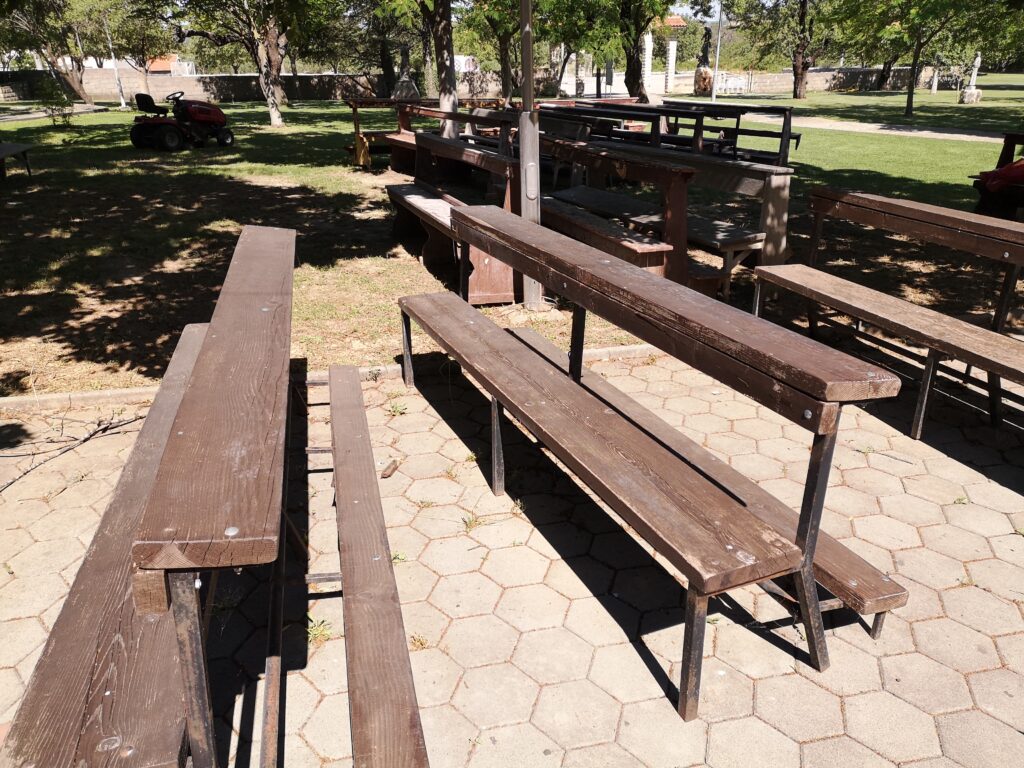 Nach einem schnellen Kaffee auf dem Campingplatz wollten wir los und unser Frühstück abseits des Trubels in der Natur genießen. Tisch und Bänke wären dafür natürlich nicht schlecht. Bei einer kleinen Kirche haben wir aus der Ferne einige Sitzgruppen ausgemacht. Als wir näher kamen stellte sich heraus dass die Kirche gerade renoviert wurde.