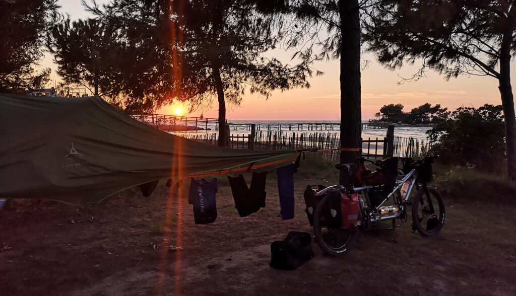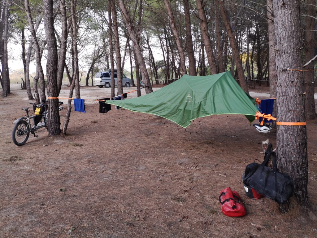 Hurra! Der örtliche Campingplatz hat drei geeignete Bäumchen für unser Zelt.
