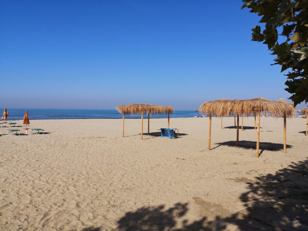 An unserem letzten Tag erleben wir im Zeitraffer noch einmal alle Abenteuer unserer Reise. Das schattige Plätzchen und das Meeresrauschen sorgen dafür, dass wir erst nach 7 Uhr aus unserem Zelt klettern. Wir bauen in aller Ruhe unser Lager ab und radeln dann nach Durrёs. Dort genießen wir in einem Strandhotel das Frühstücksbuffet mit Blick aufs Meer.